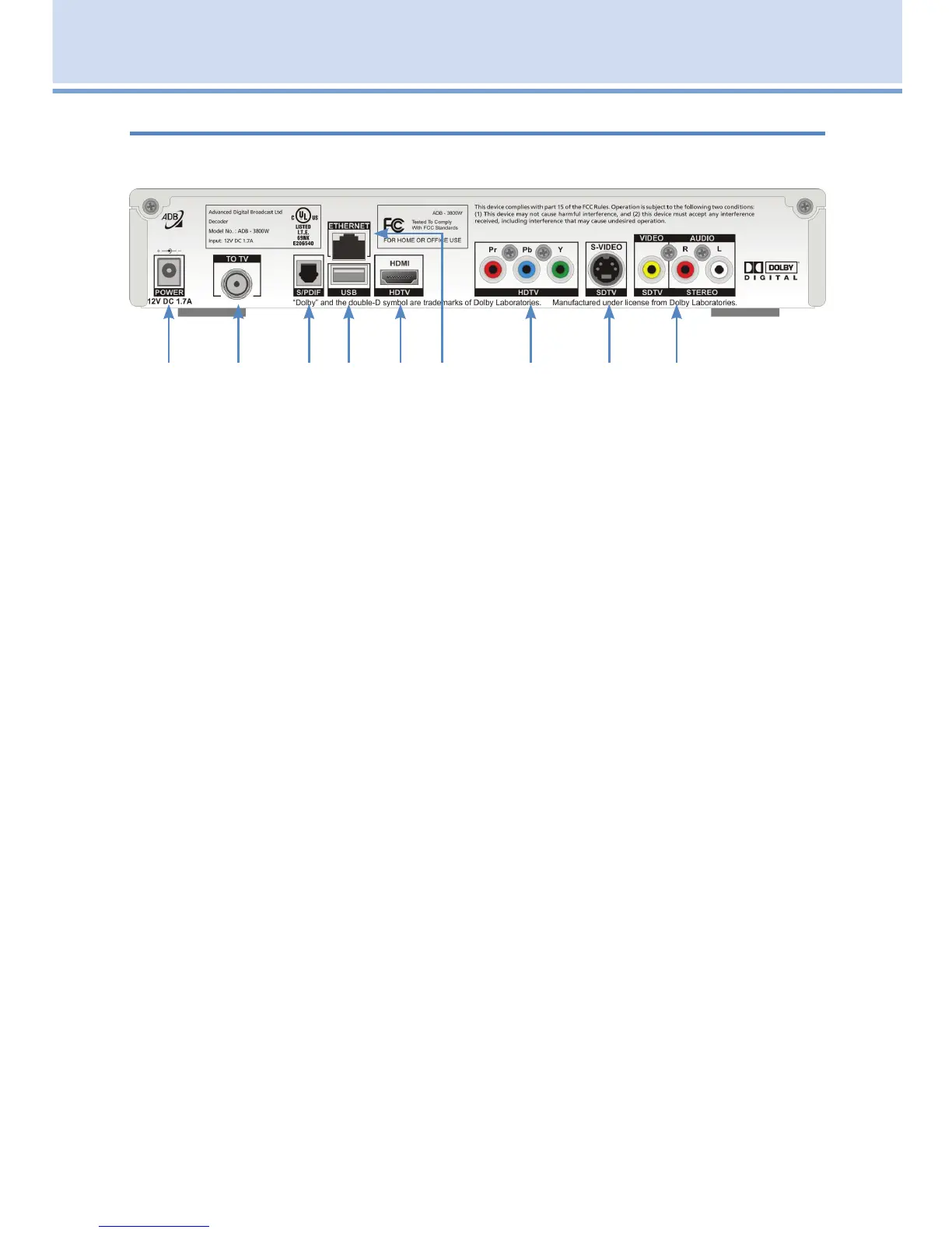 1. Power 12V DC 1.7A Provides power to the set top box.