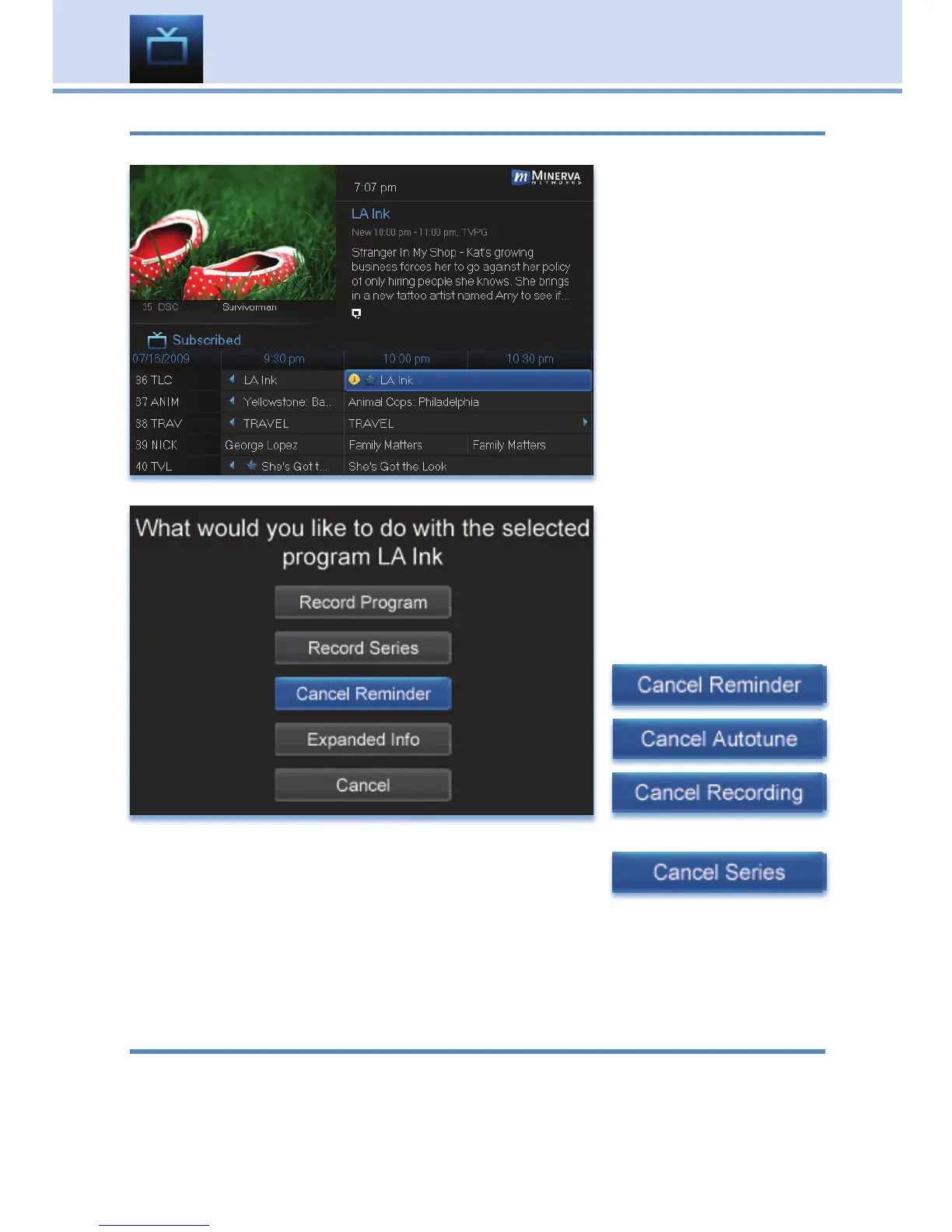 Canceling an Autotune, Reminder, Recording or Series Recording