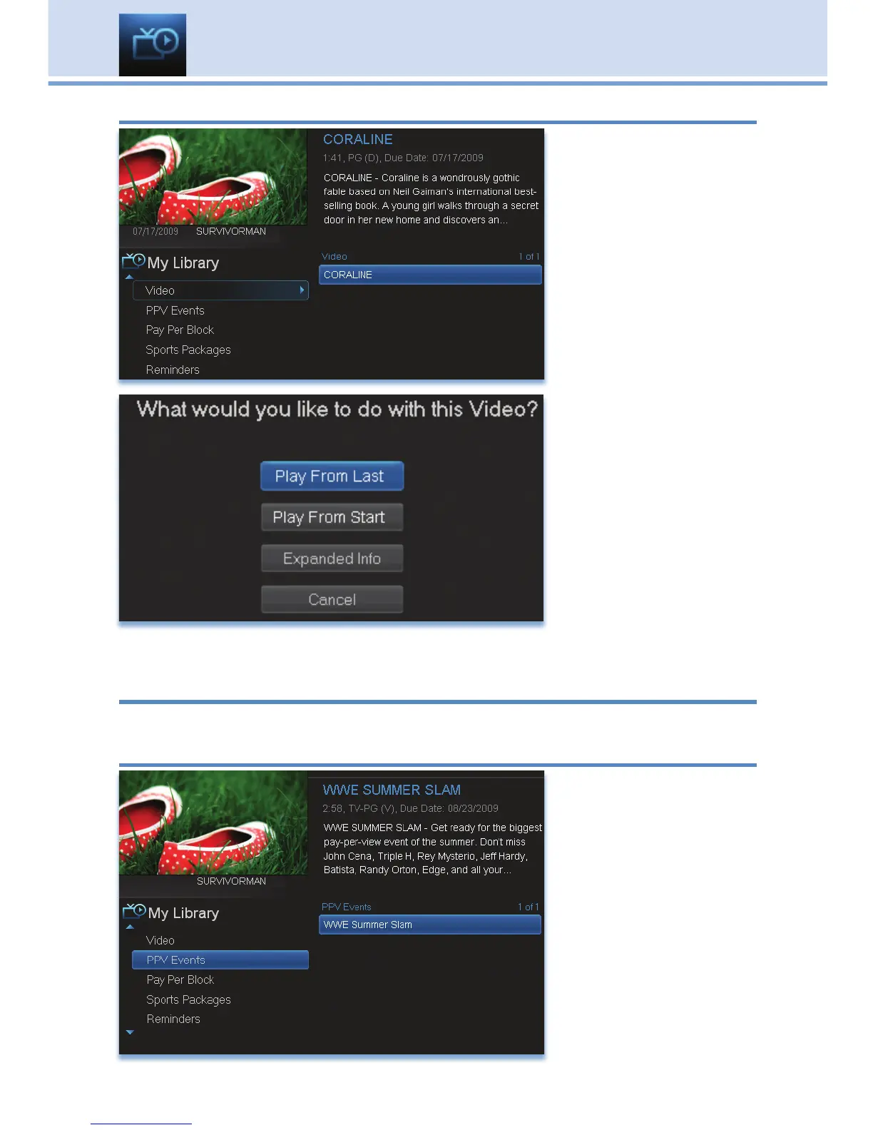 PPV Events allows you to view a previously purchased program.