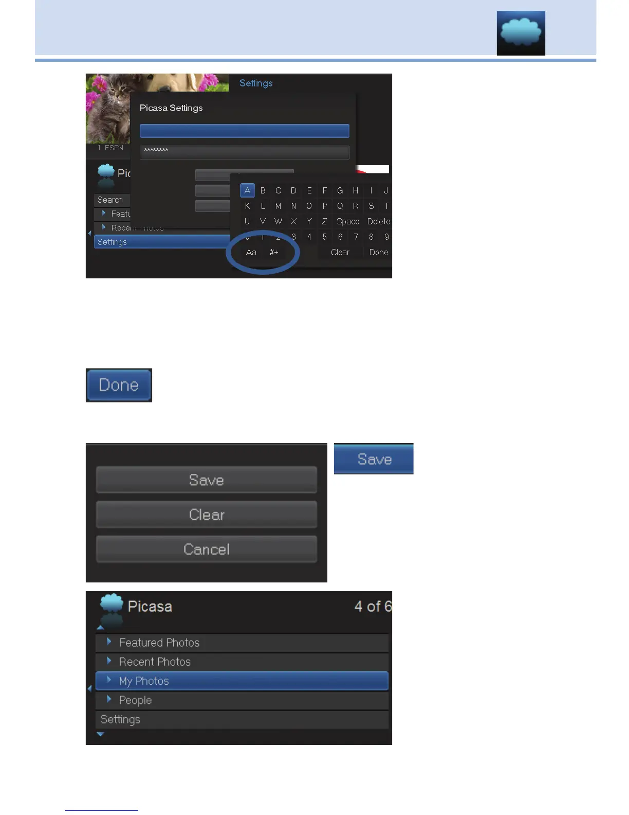 Picasa Settings screen.