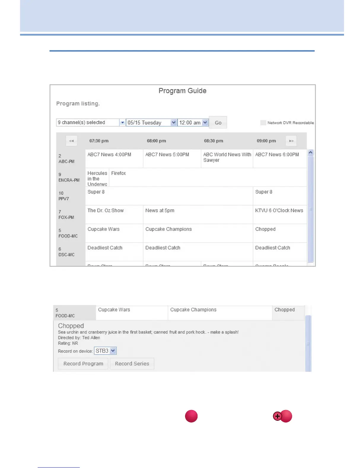 program to record. The same channels on your television will show on your