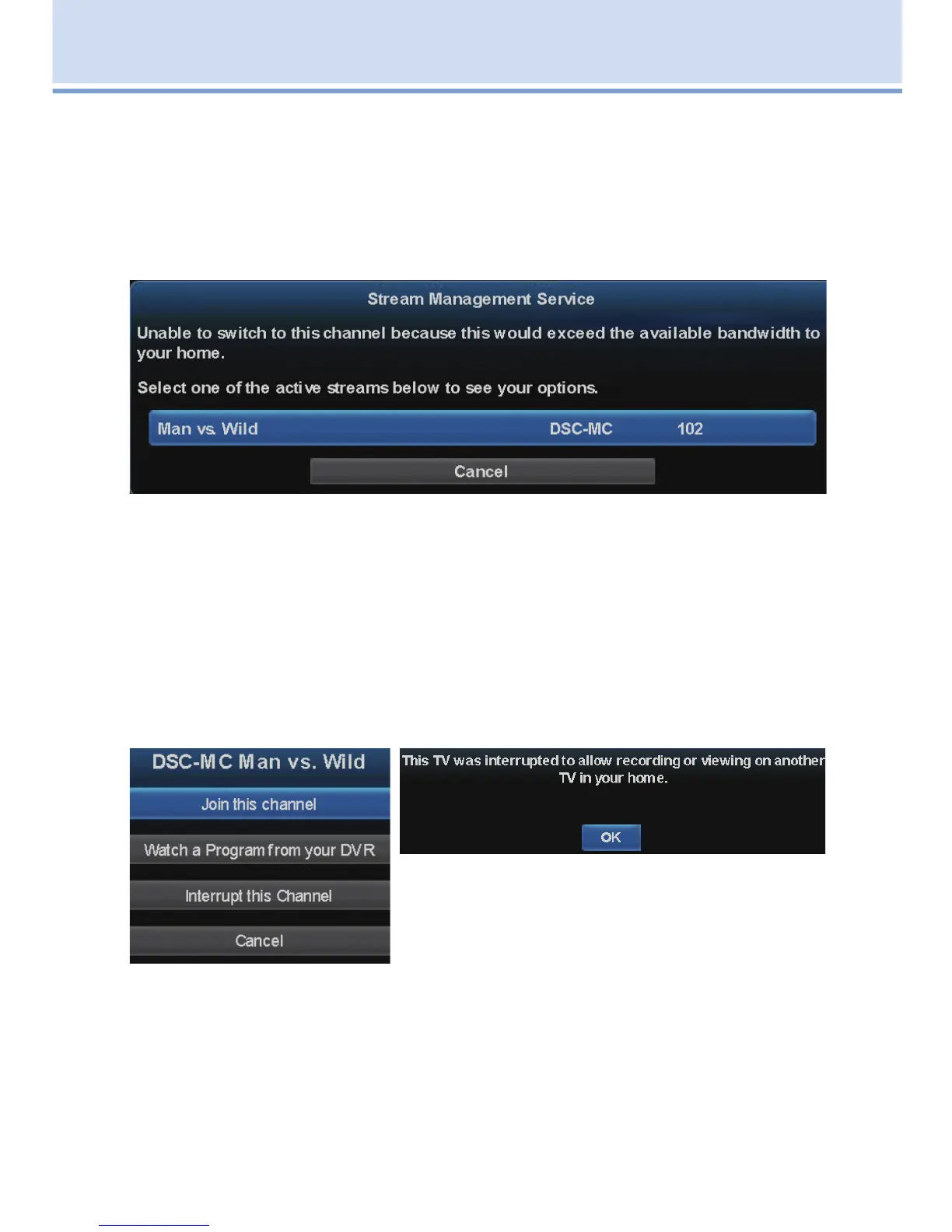 interrupts the other STB from its current channel viewing.