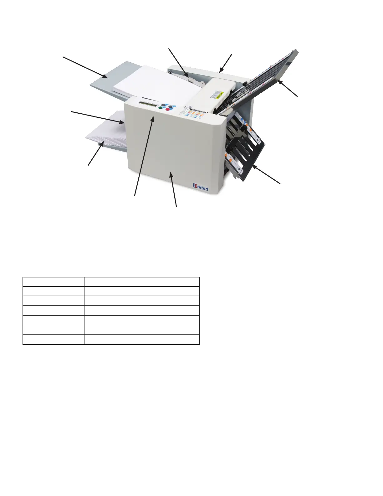 The United F100 Tabletop Paper Folder is designed to fold various paper sizes. The fold plates are manually