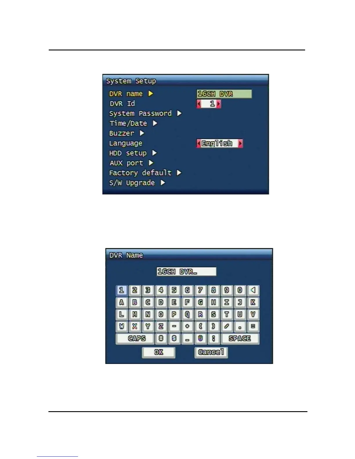 Unitek DVR-404 - System Setup Screen; DVR Name