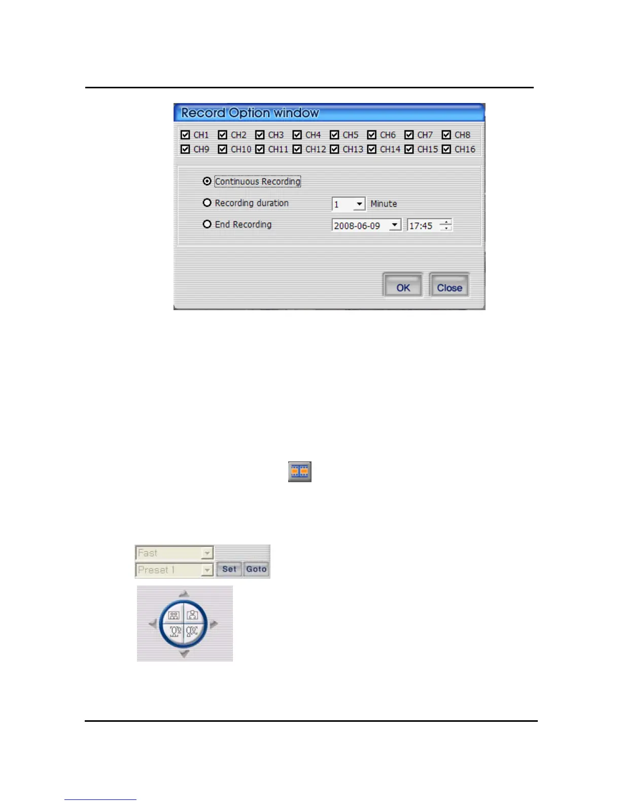 ④ Recording close time : It keeps recording, until the time is set up. User is able to make the