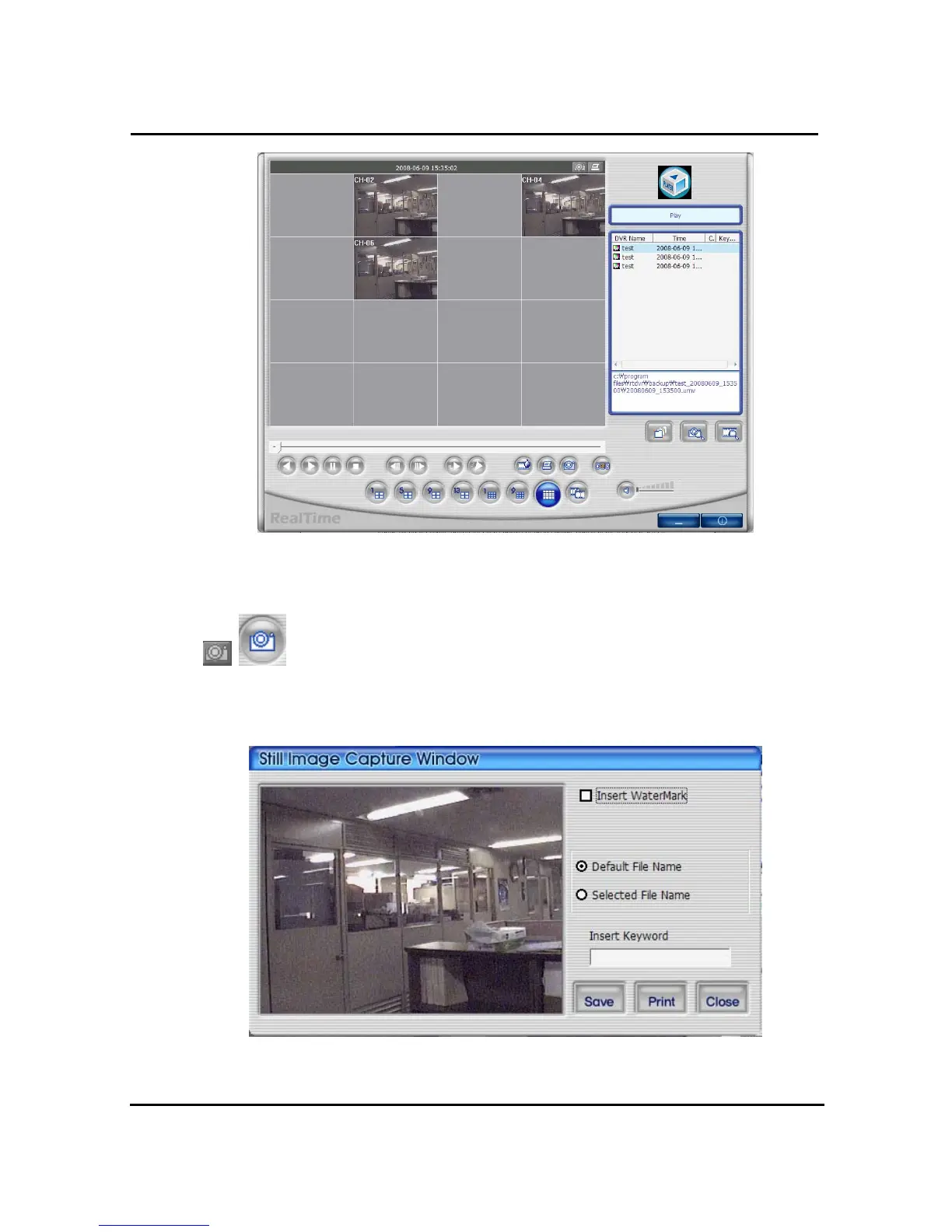 Save replaying images into still image by capture. Besides users can capture