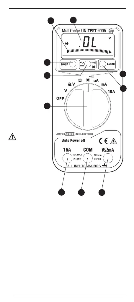 8. Button “=/;“: automatic switching between DC and AC voltage