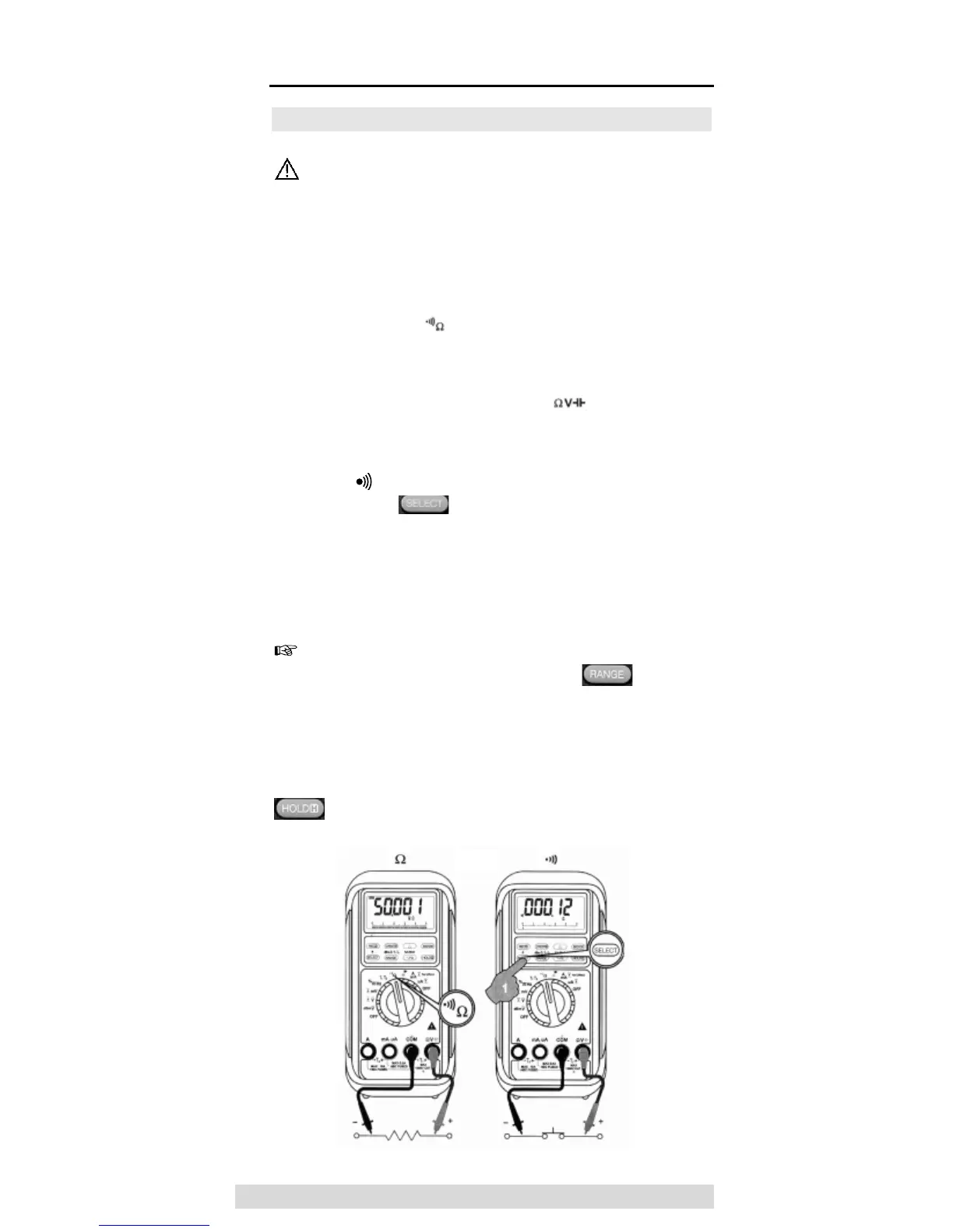 " Der Widerstandsmessbereich ist voreingestellt. Ist