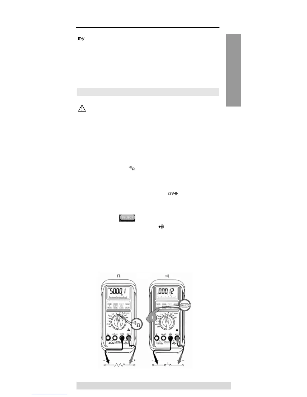 " Der Widerstandsmessbereich ist voreingestellt. Mit