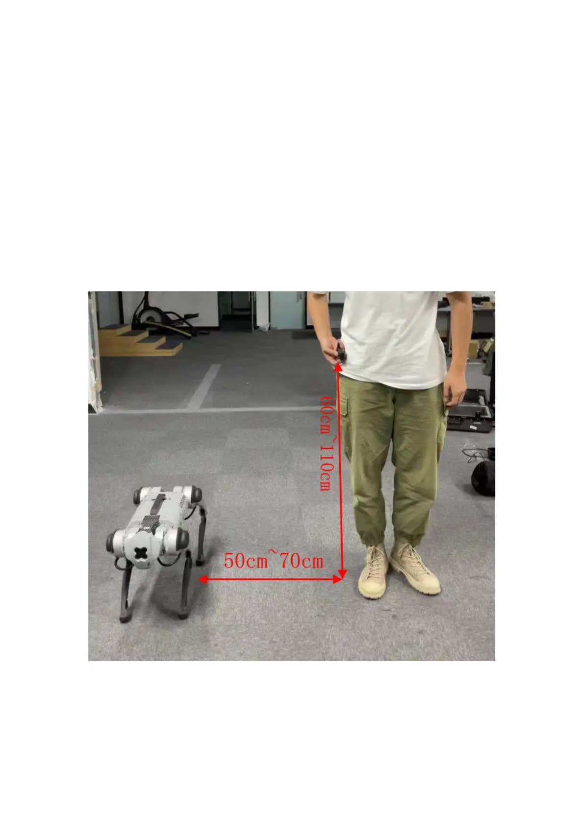 standing on the left side of the robot, with the torso facing the same as the robot. Short press and long