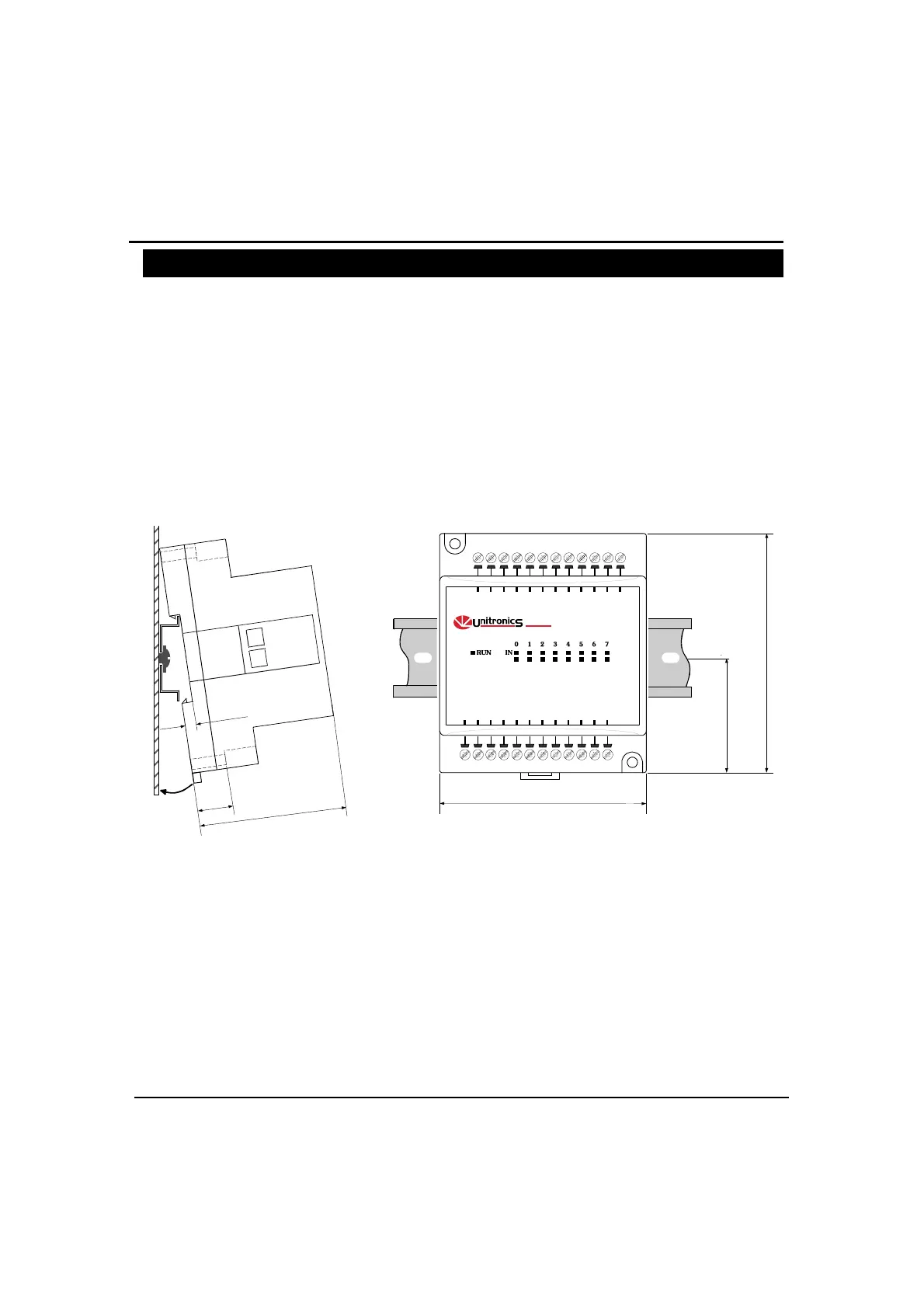 Snap the device onto the DIN rail as shown below; the module will be squarely situated on the DIN rail.