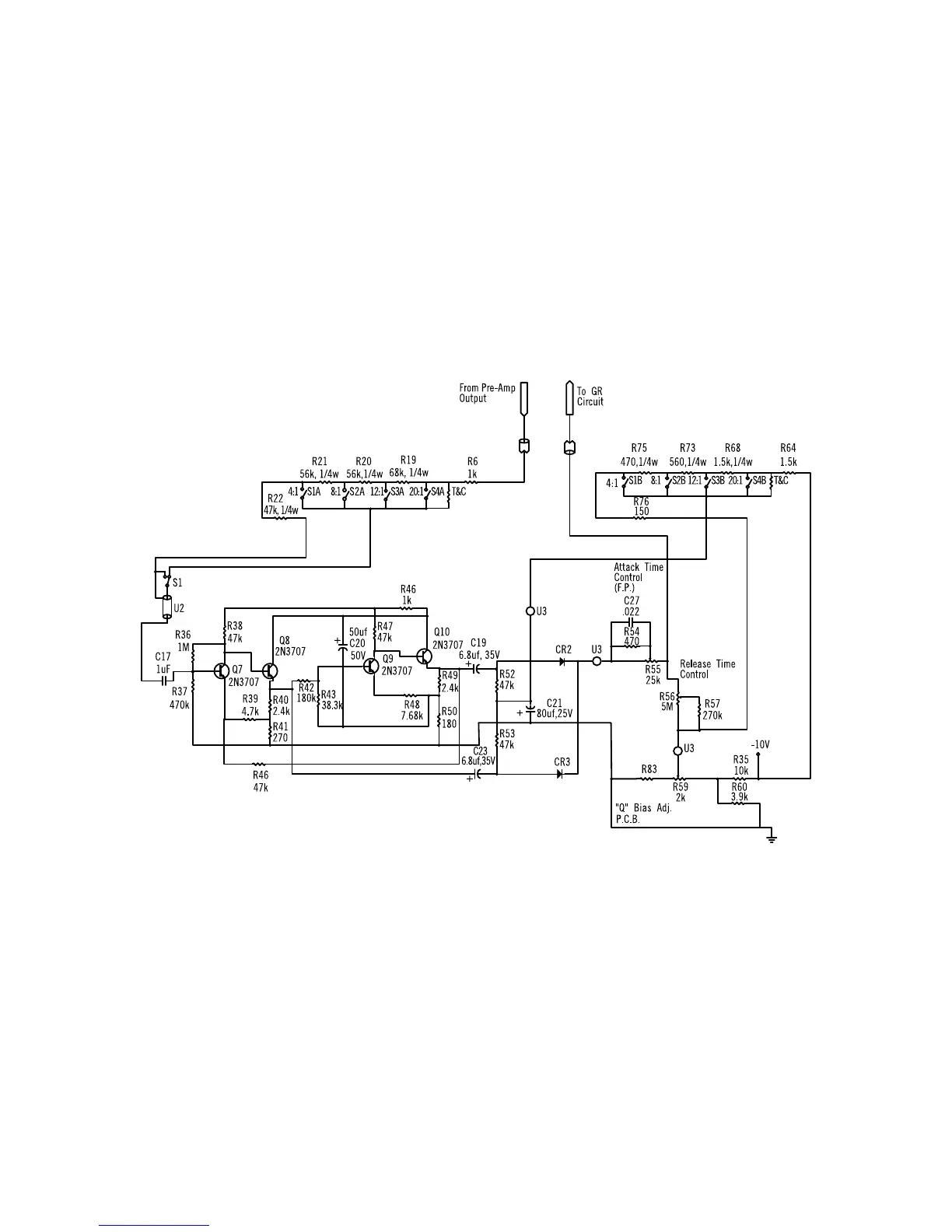 release times of the limiter. The input to this circuit is taken from the output of the preamplifier