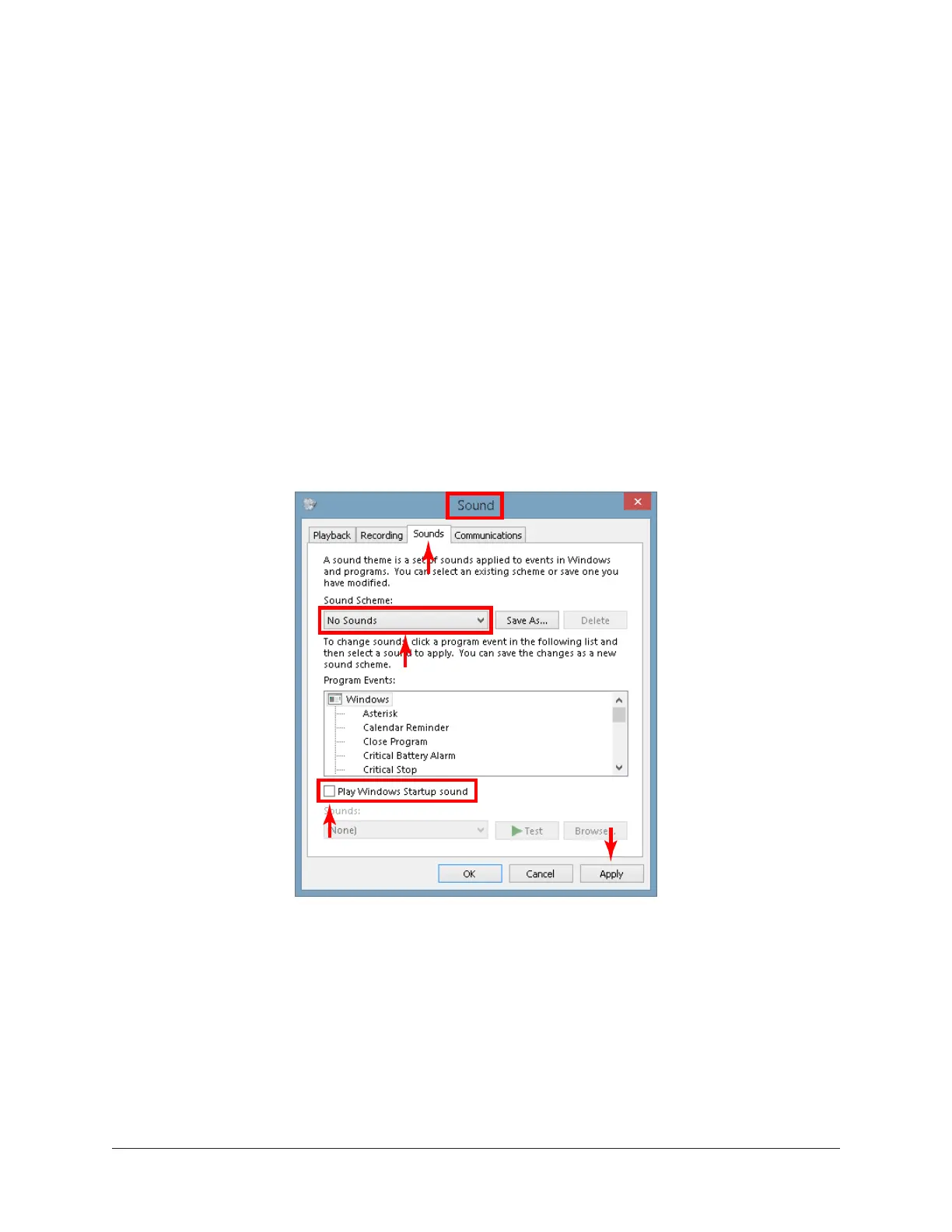 Important: Ensure the "Play Windows Startup sound" box is unchecked.