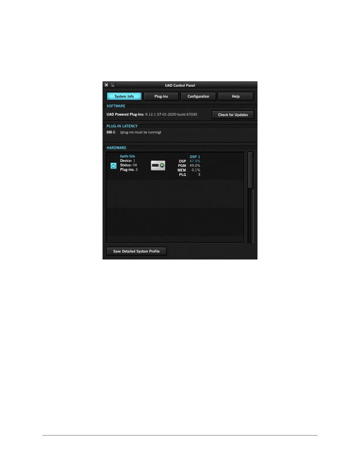 software. Running the latest version of UAD Powered Plug-Ins is recommended for