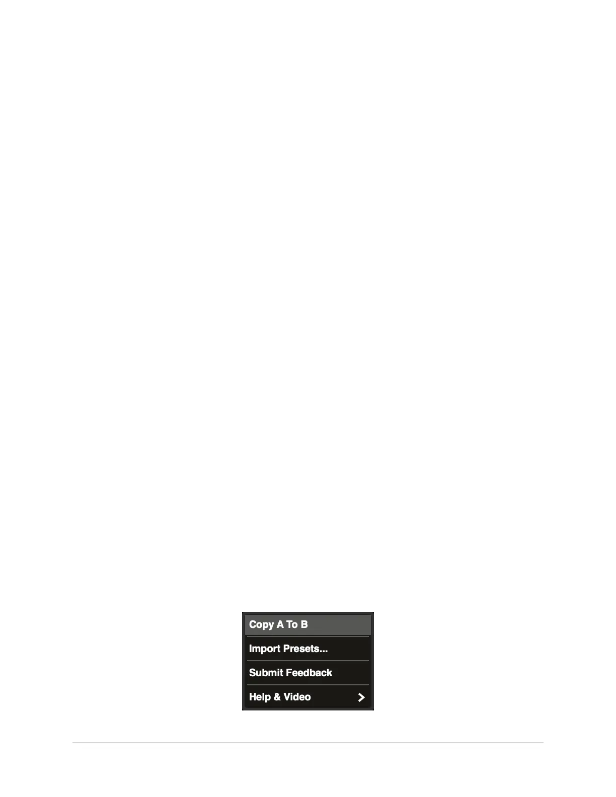 A To B (when A is active) or Copy B To A (when B is active). The A and B settings are