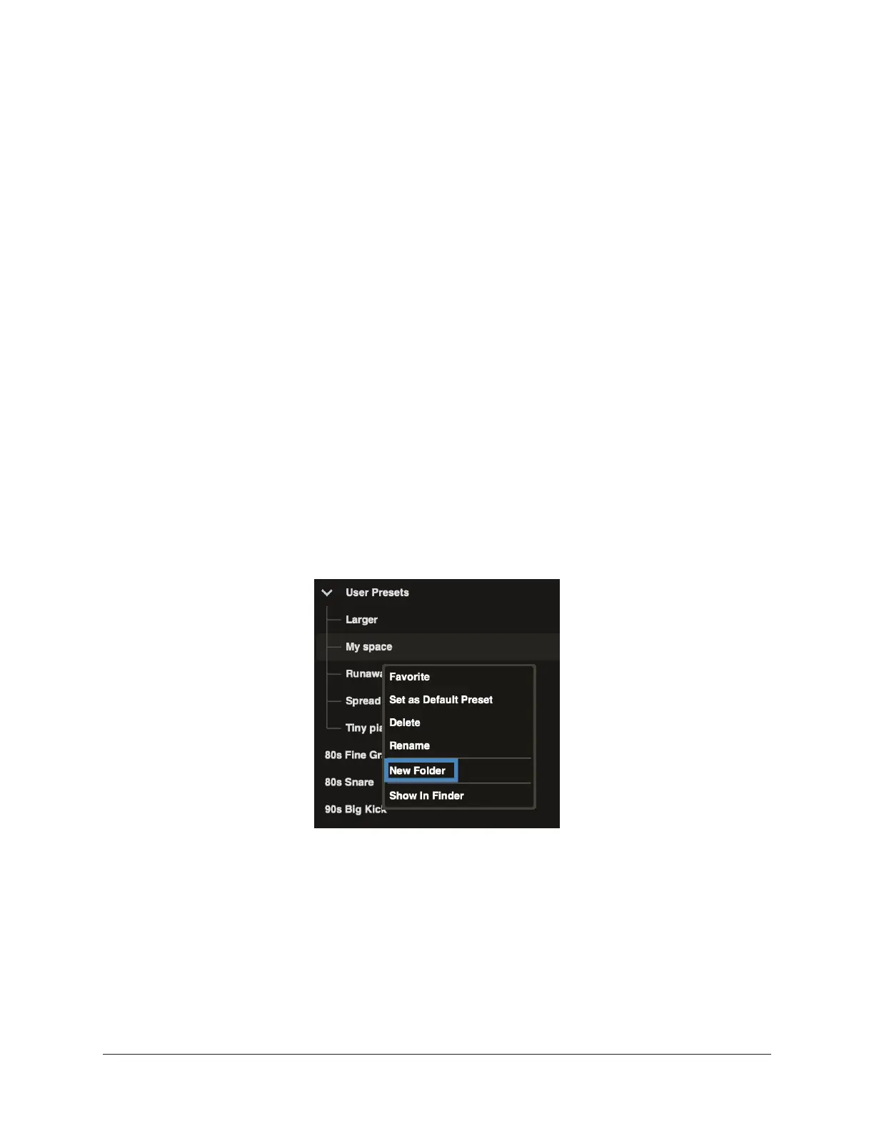 1. Right-click on a user preset or on the user presets folder, and choose New Folder.