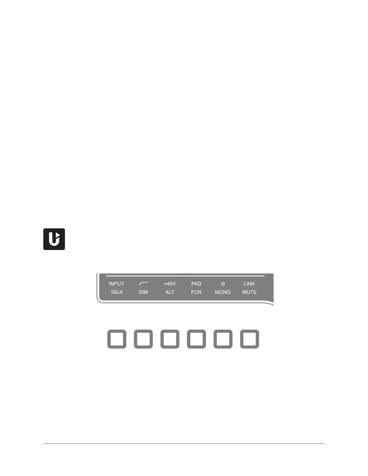 In Preamp mode, the upper row displays the preamp options and the lower row is unlit.