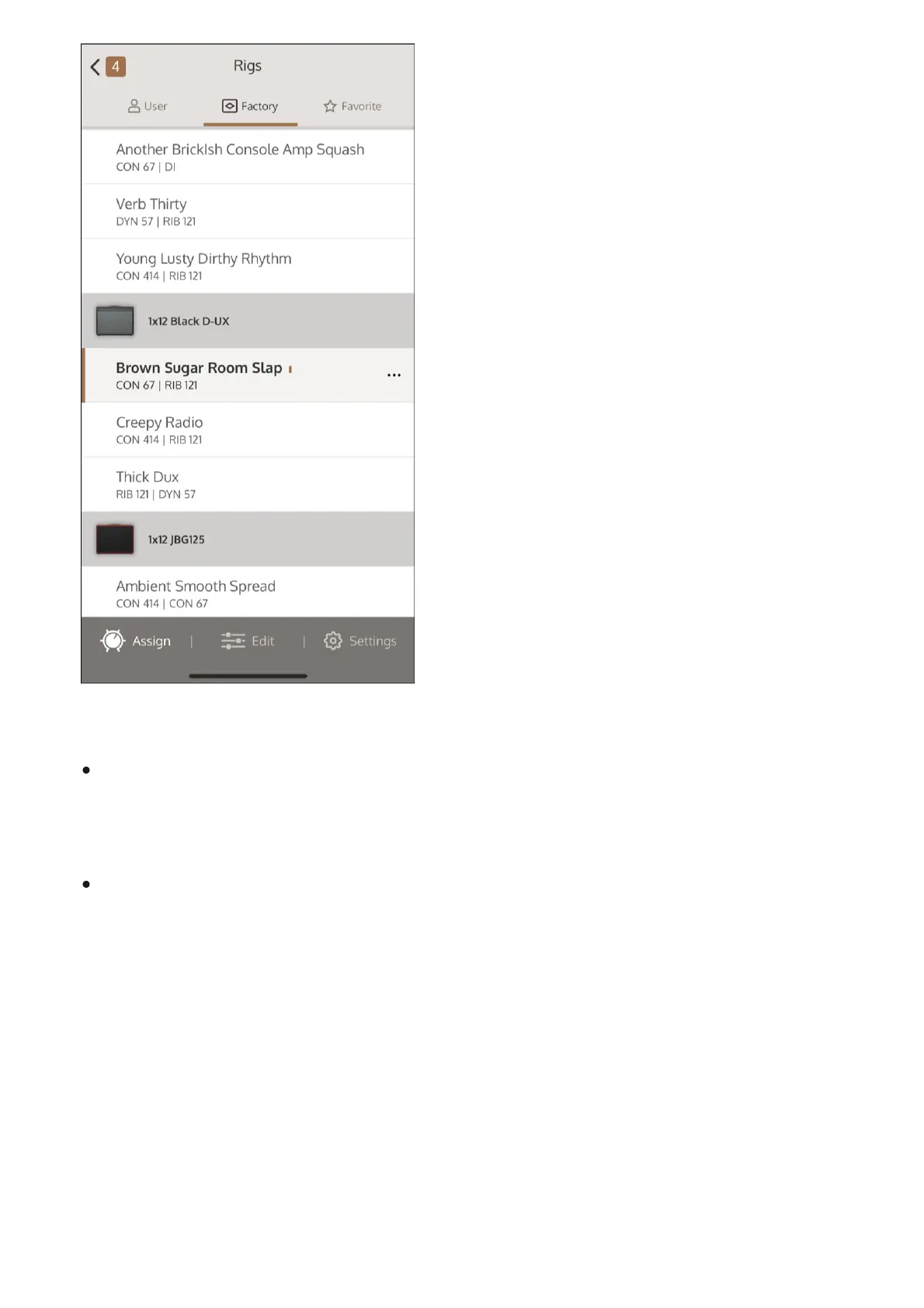 saved, appear with the word Edited in a brown highlight in the UAFX Control app. Rigs that are