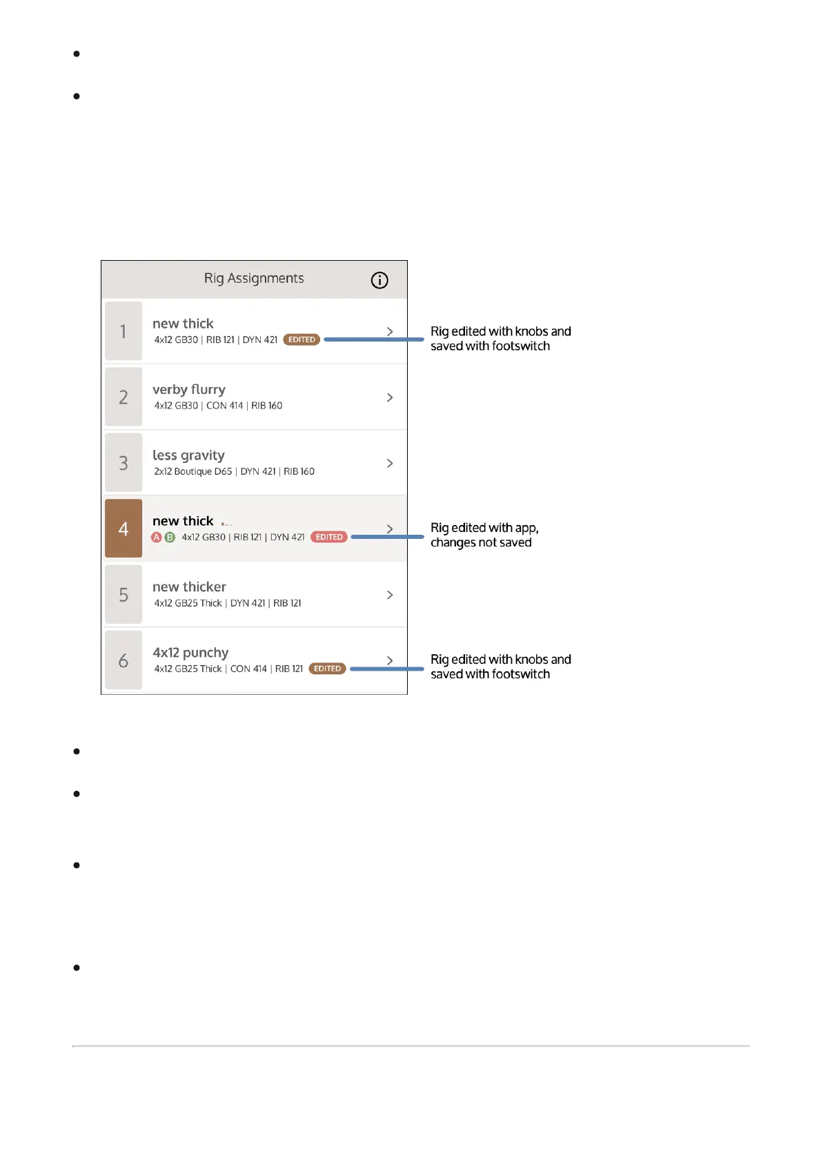 been saved with the footswitches. EDITED appears in a red highlight when changes have