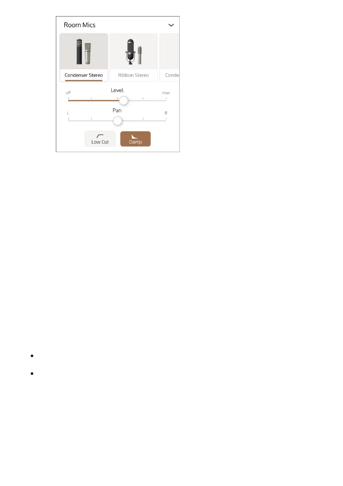 Adjust the panning of the room mic(s) with the Pan slider.5