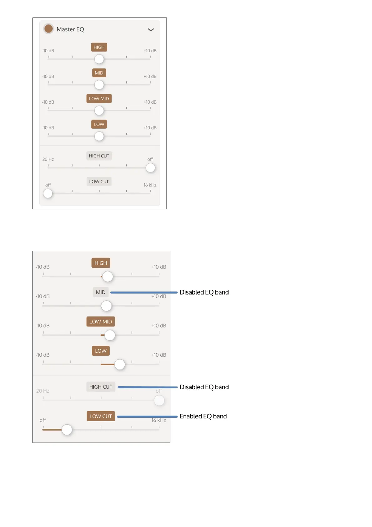 enabled EQ band has a brown label. To enable or disable an EQ band, tap the band label.
