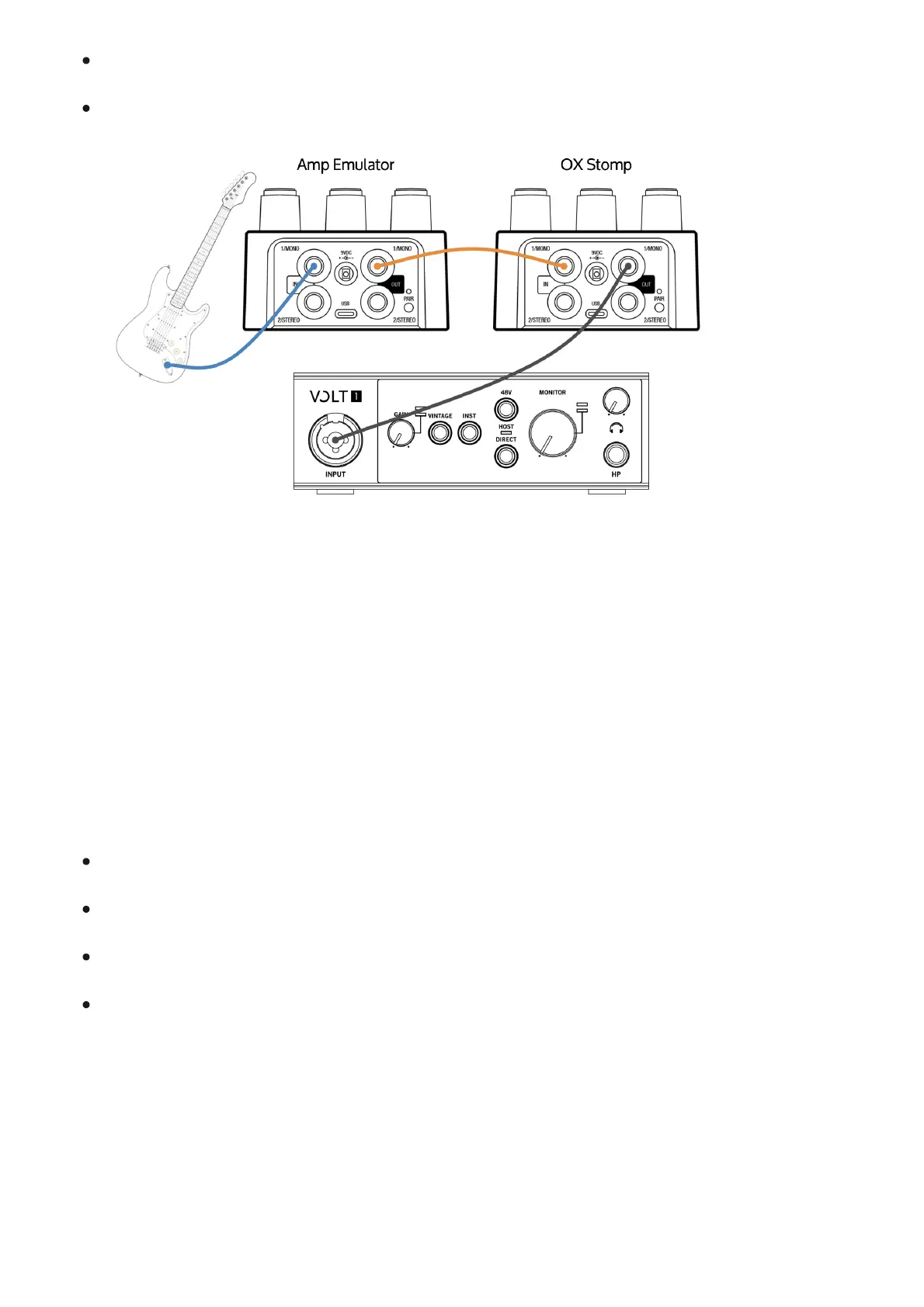 Amp emulator and OX Stomp with a stereo audio