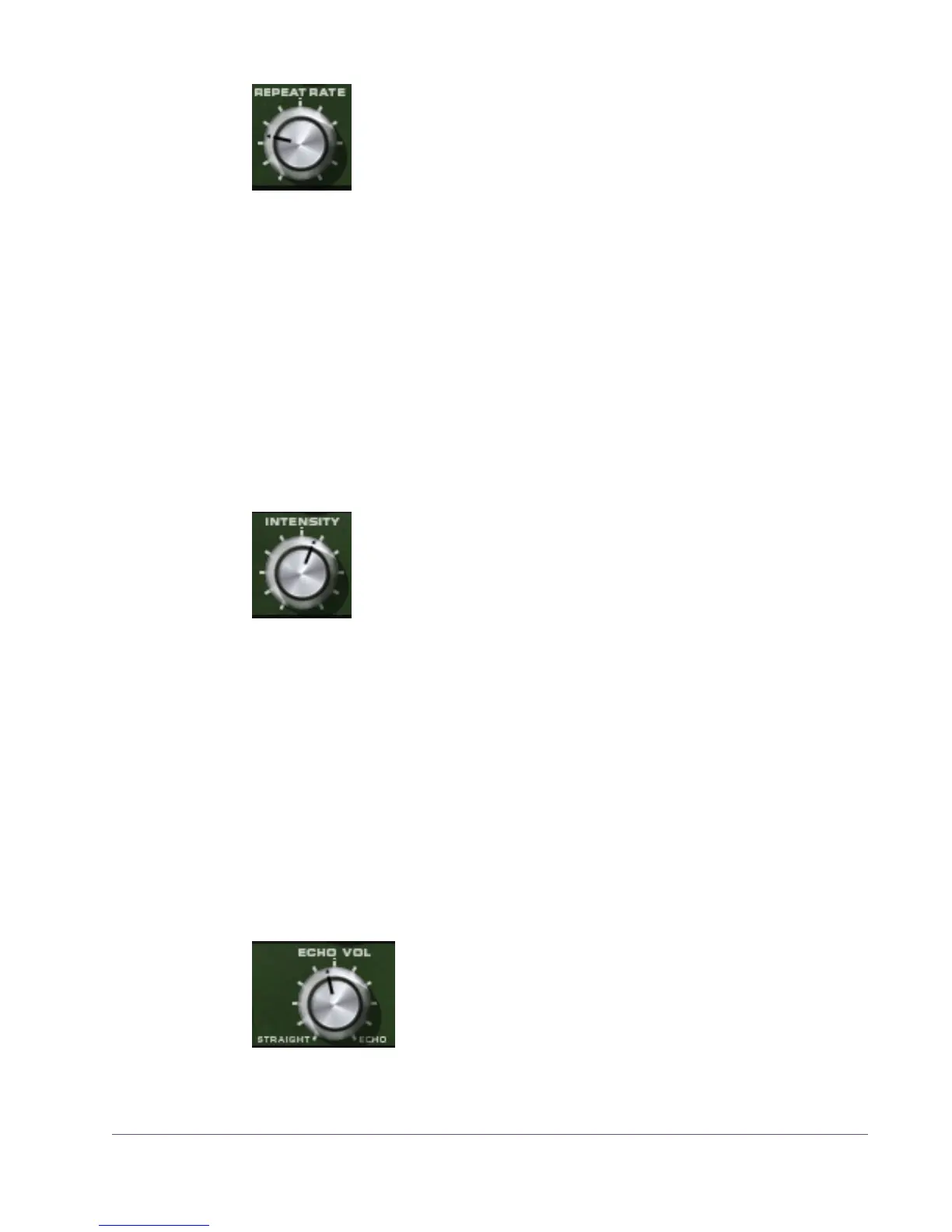 Intensity This knob controls the repeat level (feedback) of the echo signal.