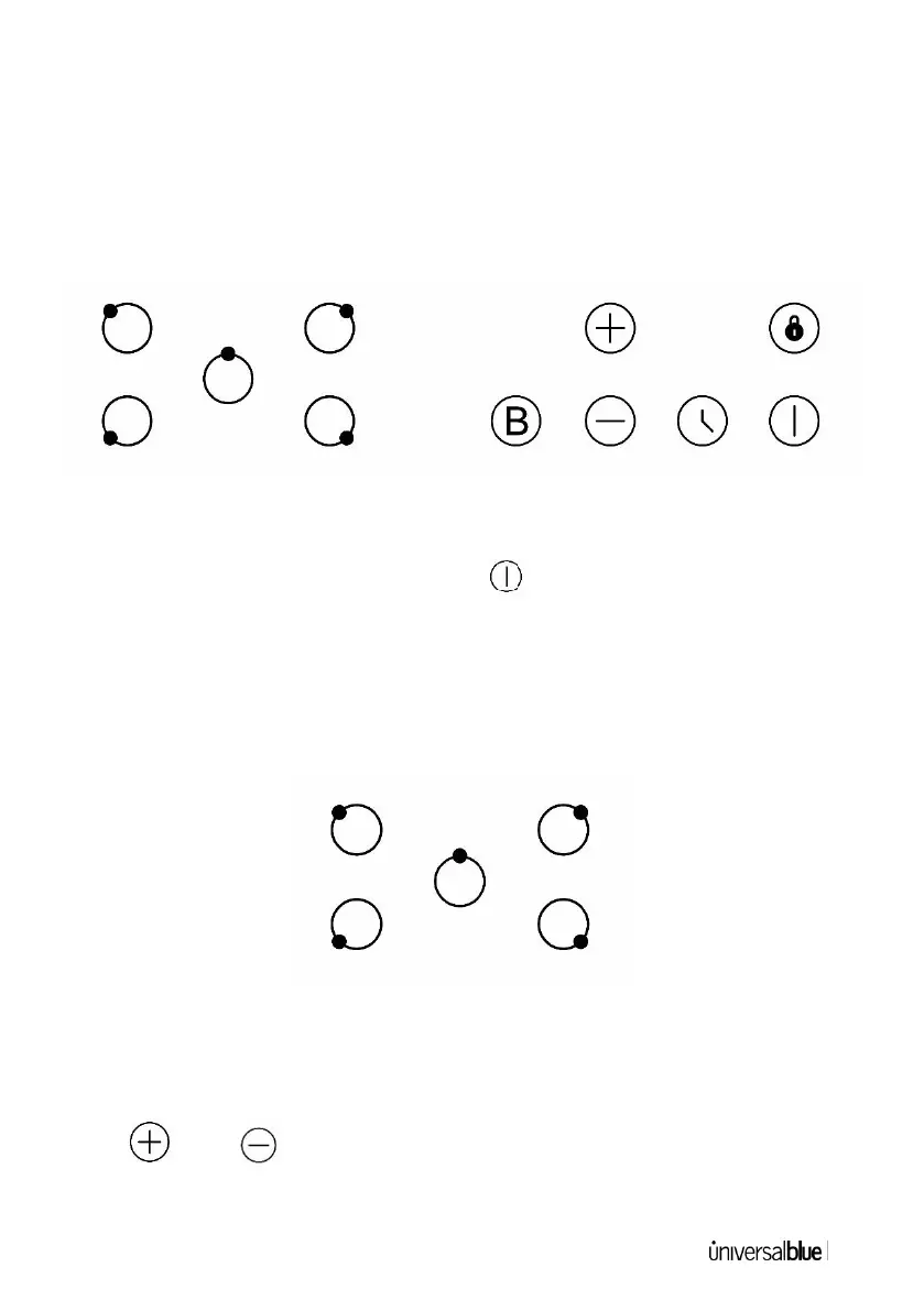 To switch the hob on, press the button and the cooking zone