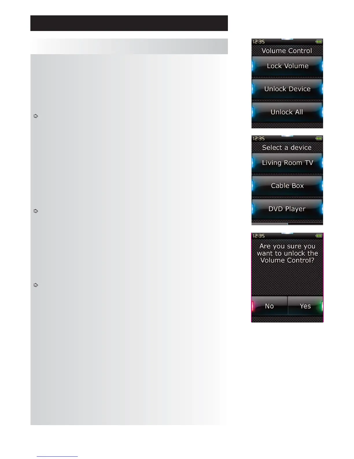 4) Select the device you want to lock volume to. The remote will display a confirmation screen.
