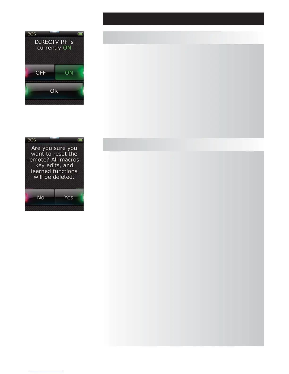 1) Select “RESET” from the Settings menu. The remote will display the Reset Screen.