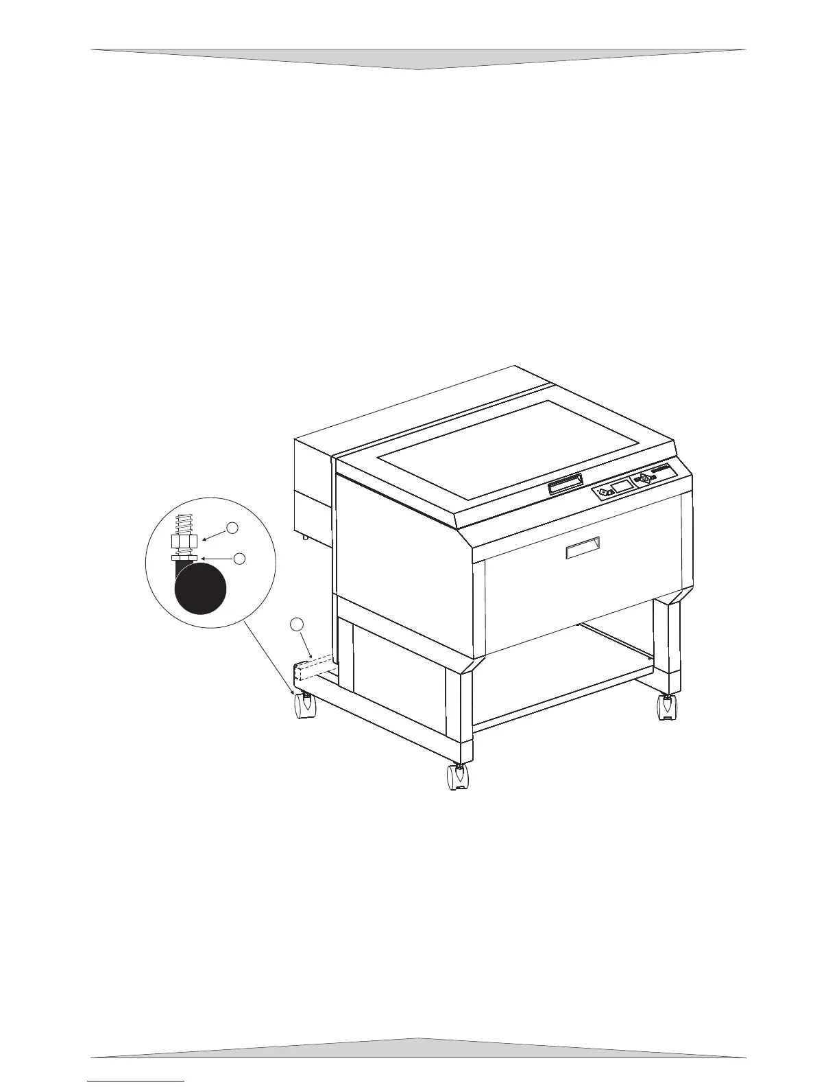 system is level, secure all casters by tightening the nut (3) up against the cart leg.
