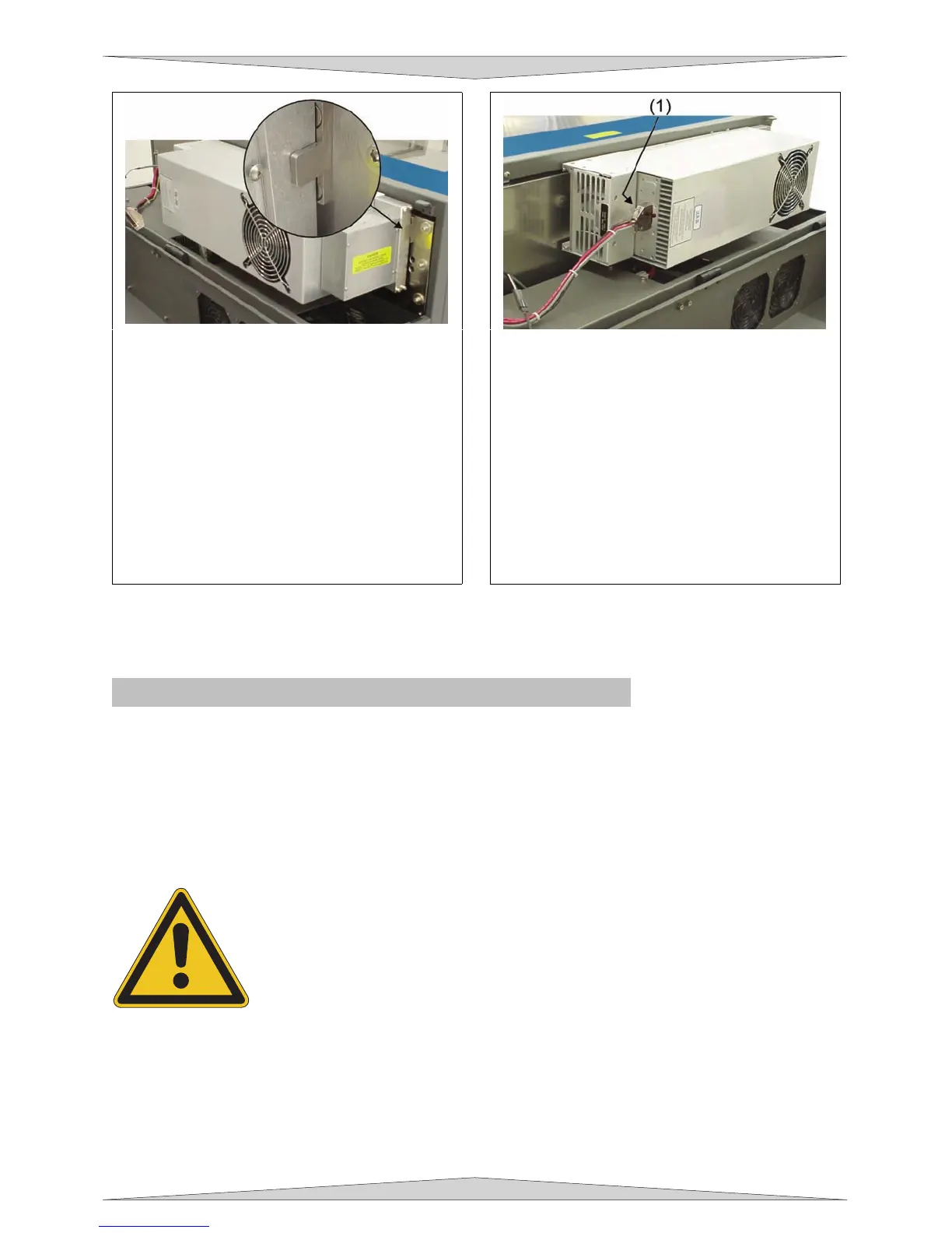 6. Plug in the power connector (1). Slowly
