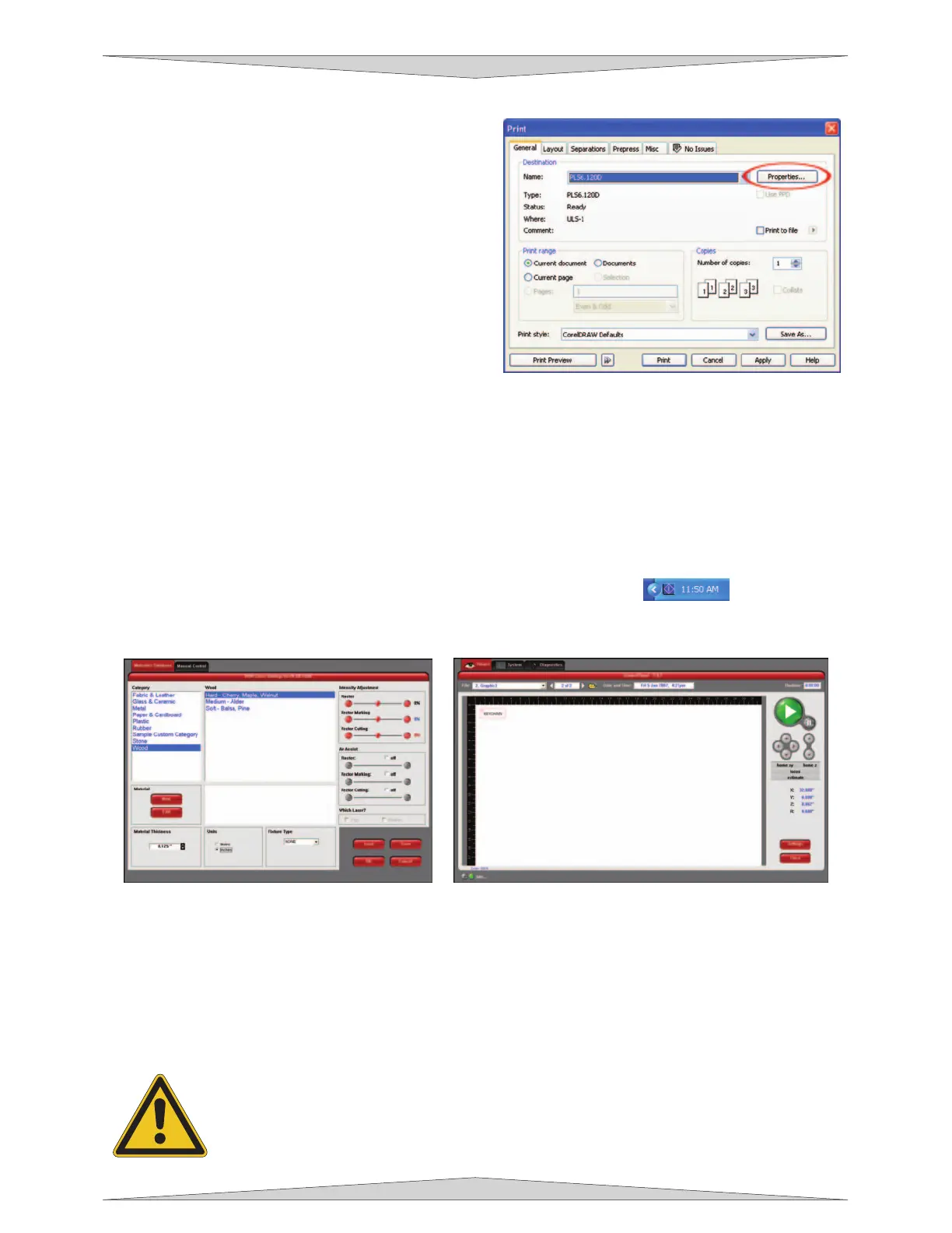 material thickness, click OK. The printer driver closes and reverts back to the Print Dialog box and now