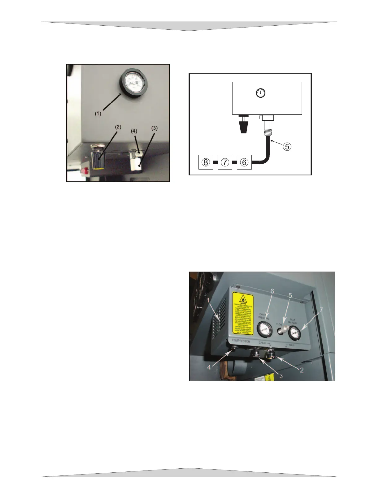 You can monitor the pressure by observing the pressure gauges (6 & 7) during operation.