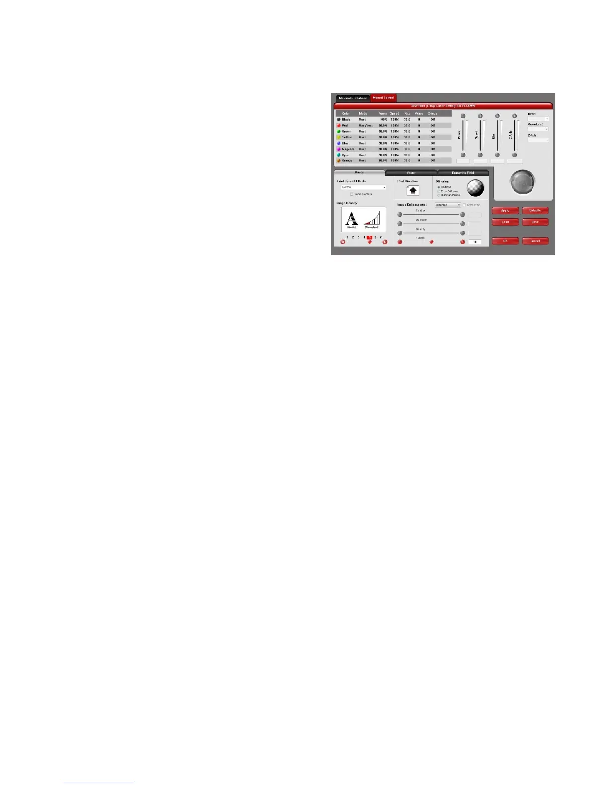 allows the user to manually configure all laser job settings.