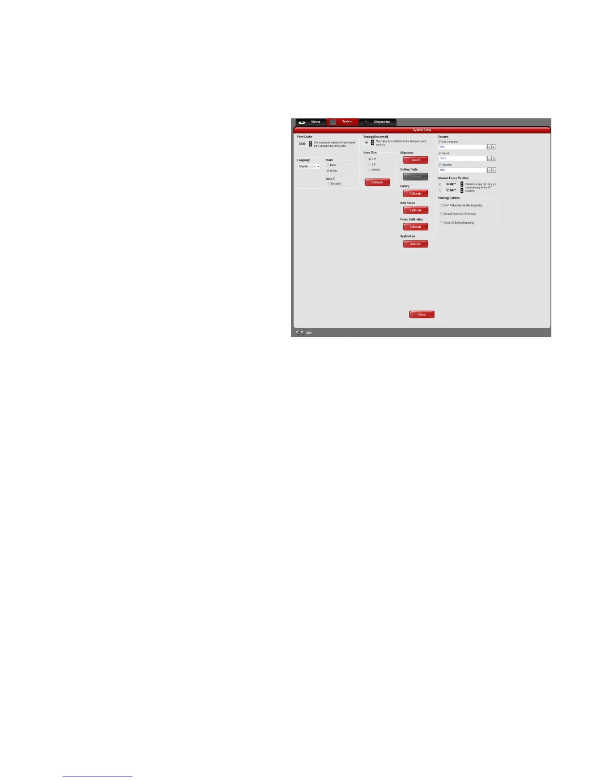 The System Tab allows you to configure certain features of the laser system. If your laser system needs to be