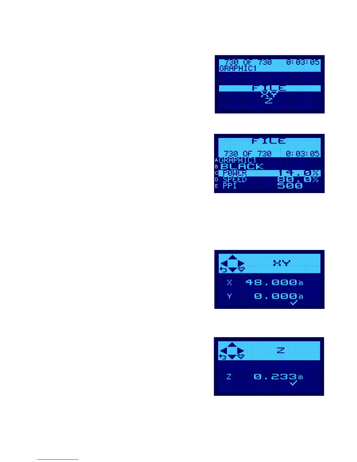 XY Menu: This menu screen displays the current position of the