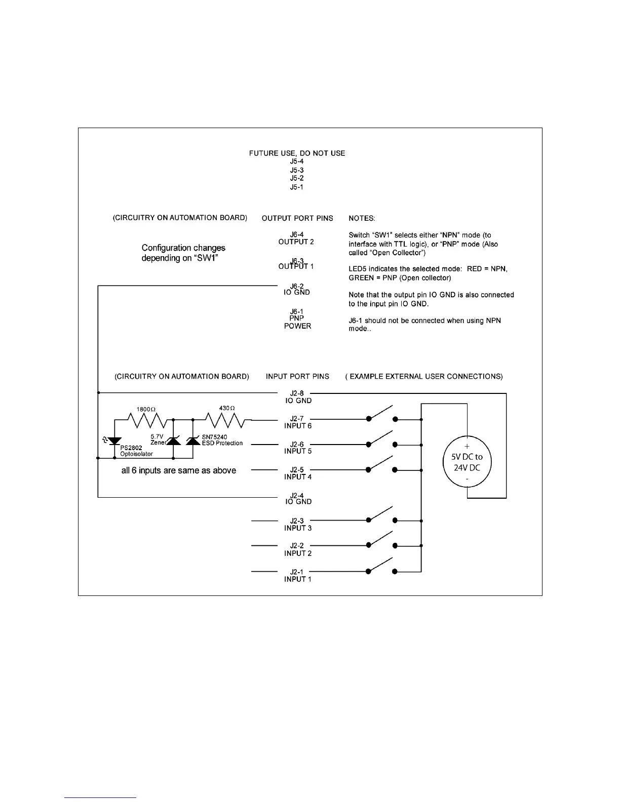modes, selectable by the “PNP/NPN” switch on the top of the board. LED 5 indicates the position of this