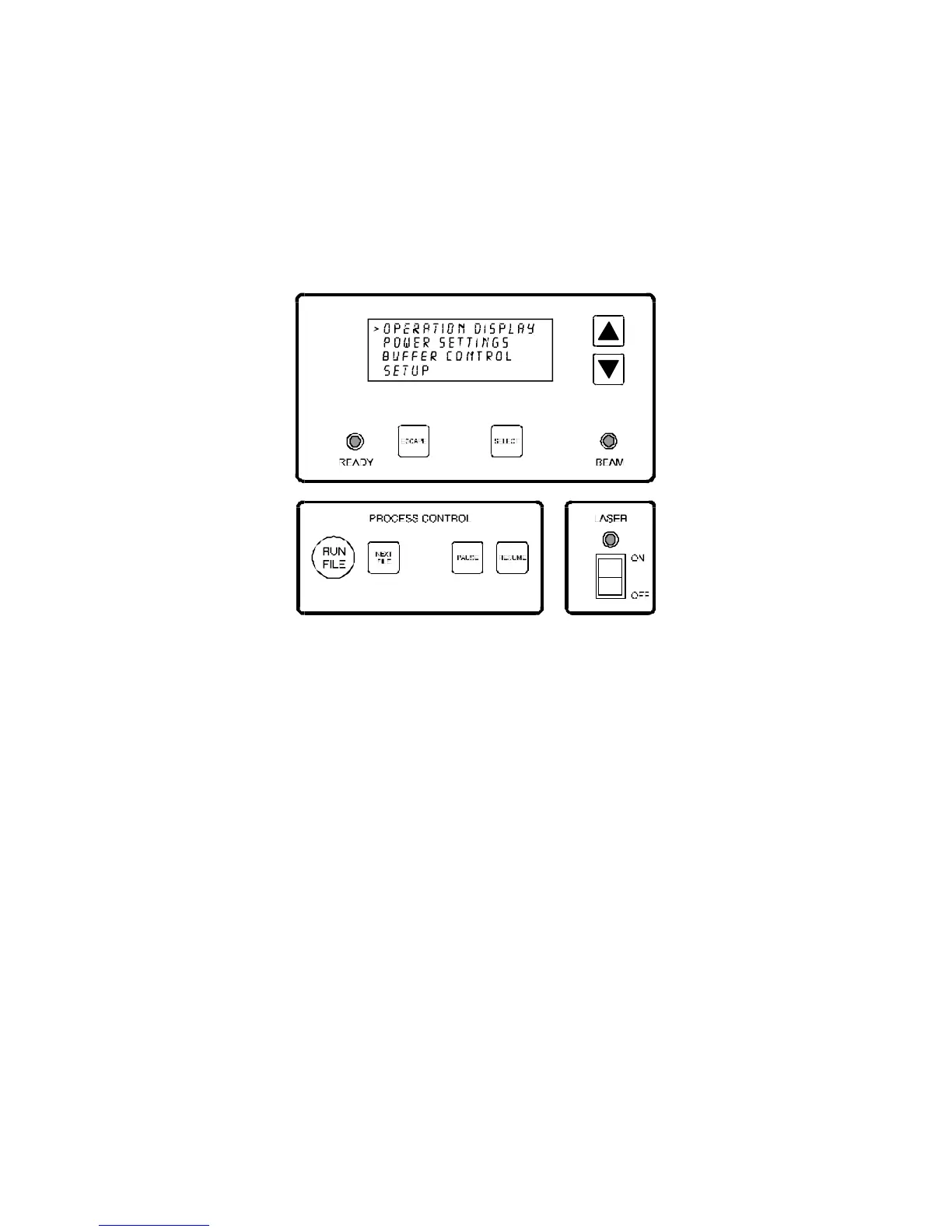sections: Menu System and Controls, Process Controls and Laser ON/OFF controls.