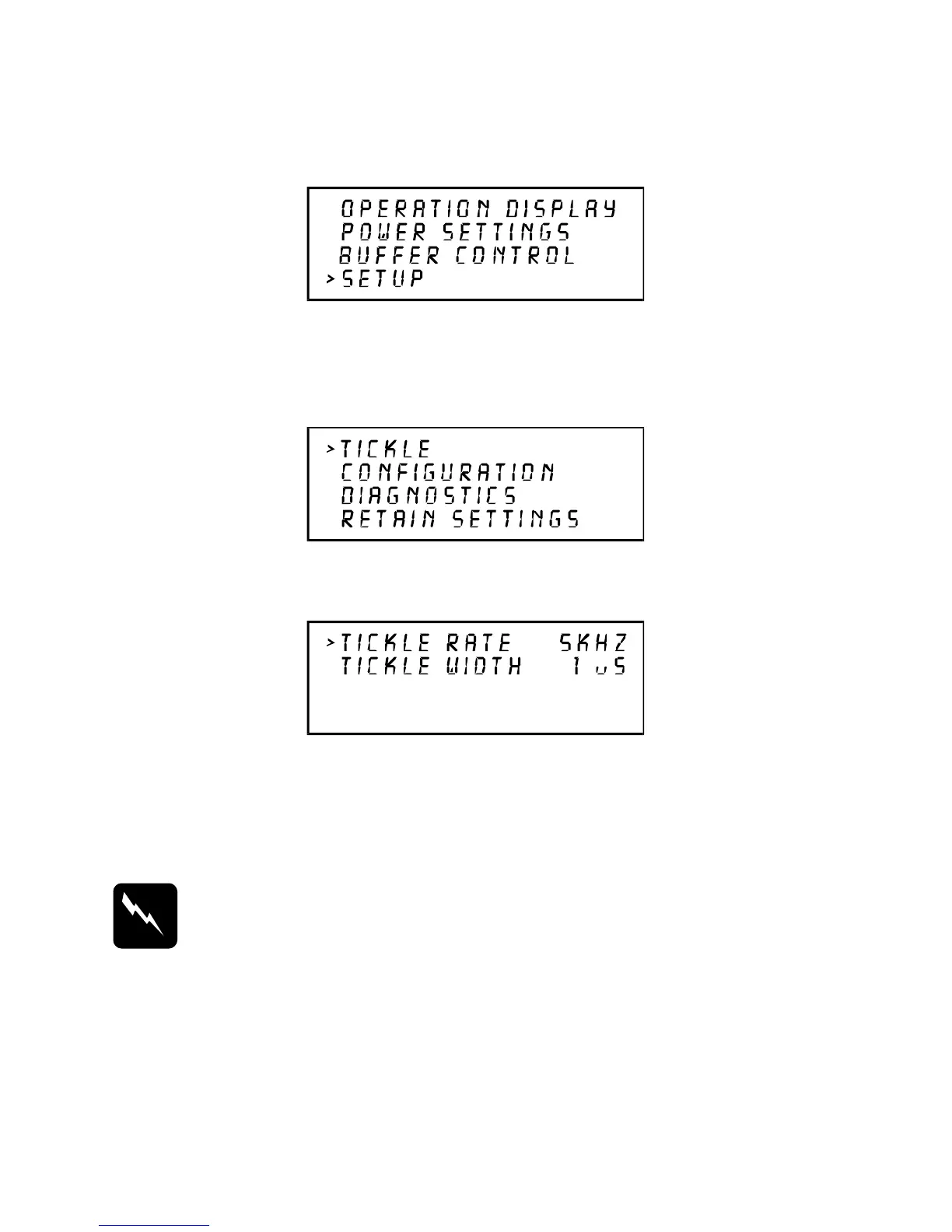 Do not attempt to adjust the TICKLE setting. Consult the ULS technical staff first to