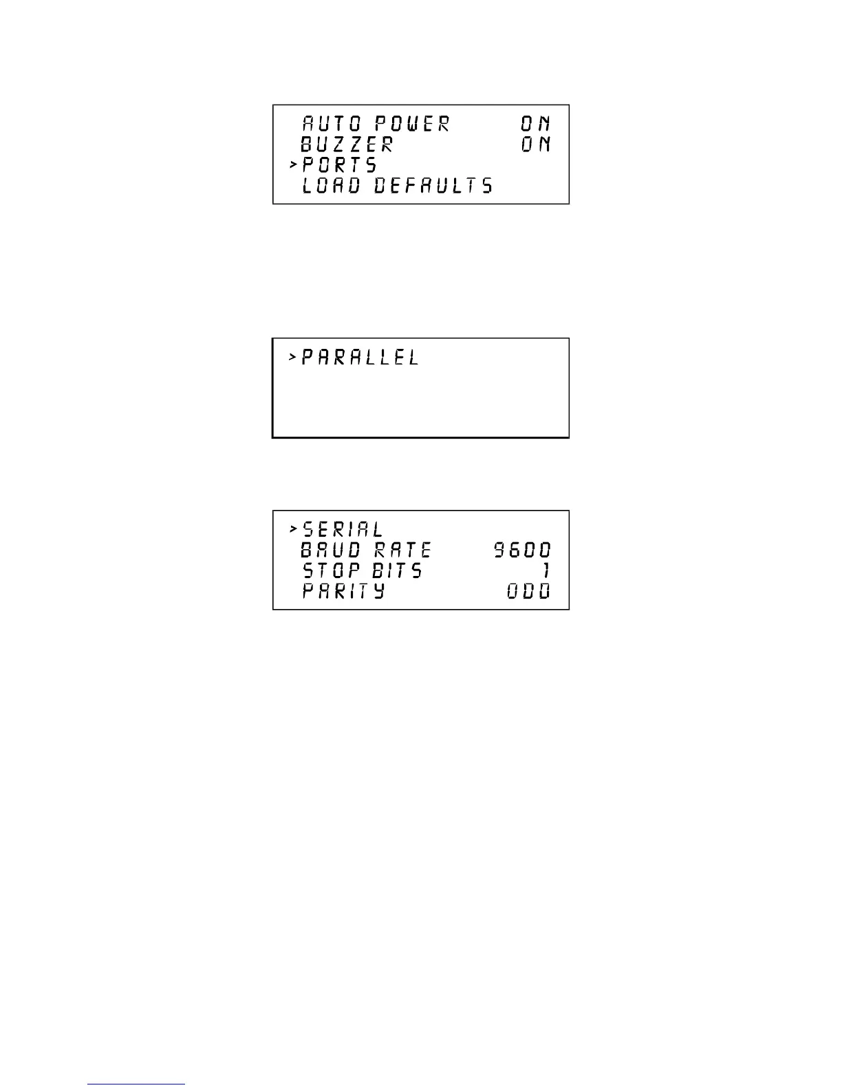 parallel port. Only one port can be used at a time. To activate a port, select PORTS from this menu