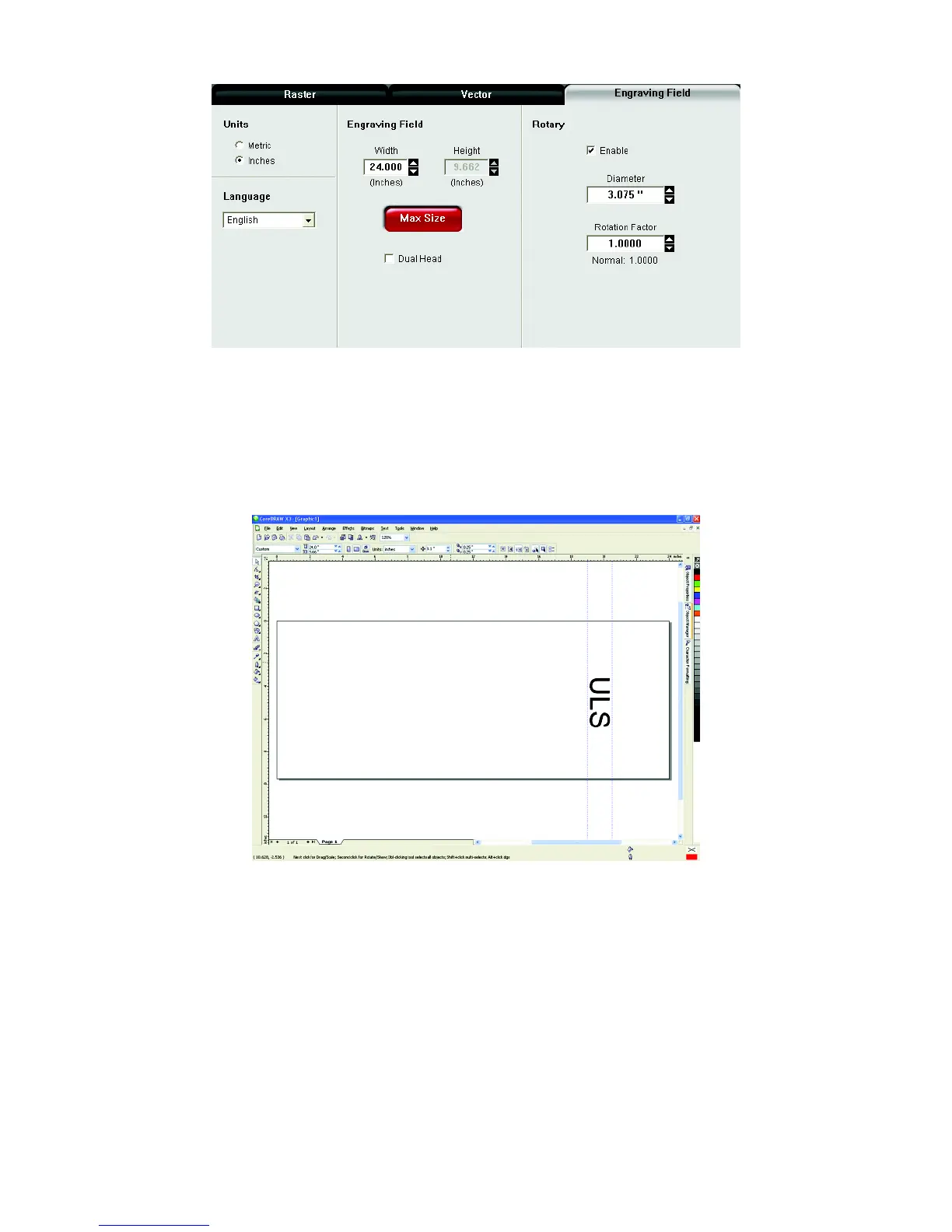 10. Position your graphic on page so that it is located horizontally within the upper and lower engraving limits