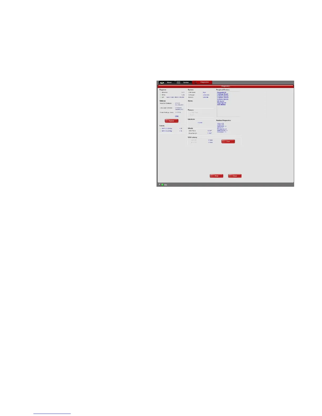 • The PRINT button gathers the information displayed on the Diagnostics Tab into a PDF file. This PDF file