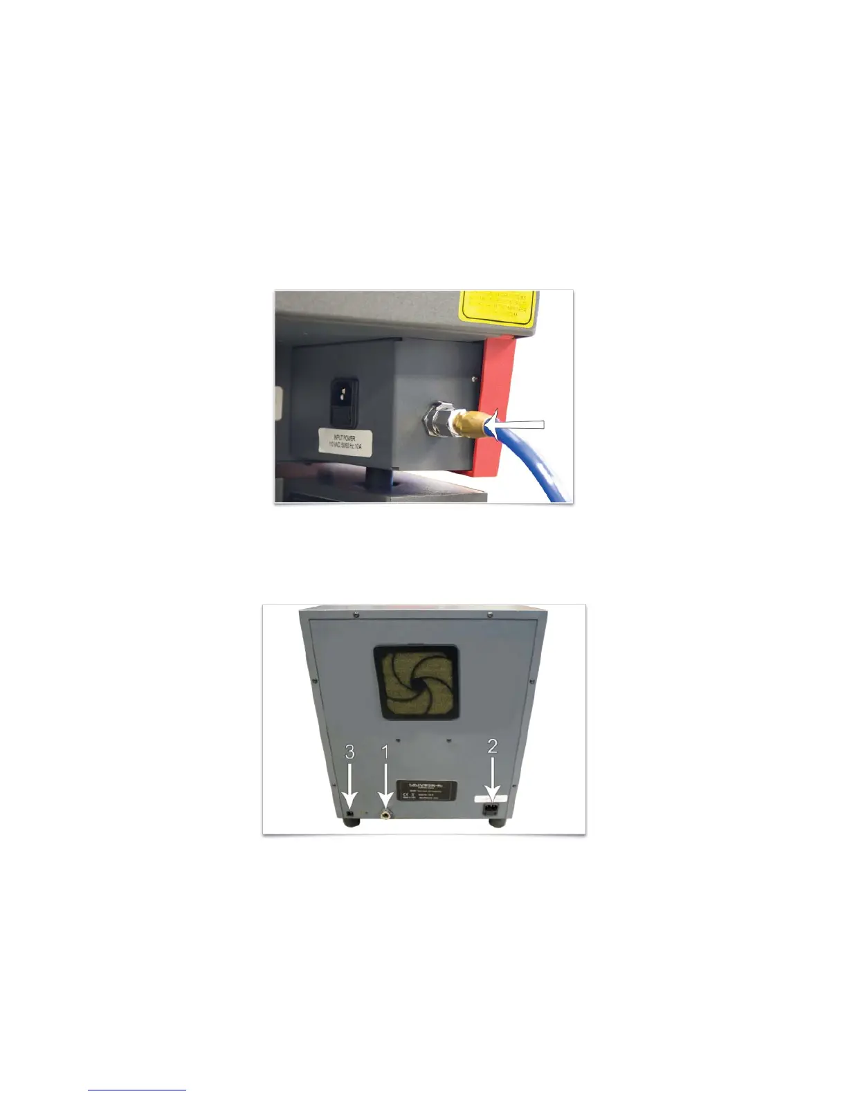 1. Insert one end of the provided blue coil hose into the air supply fitting on the back of the laser system.