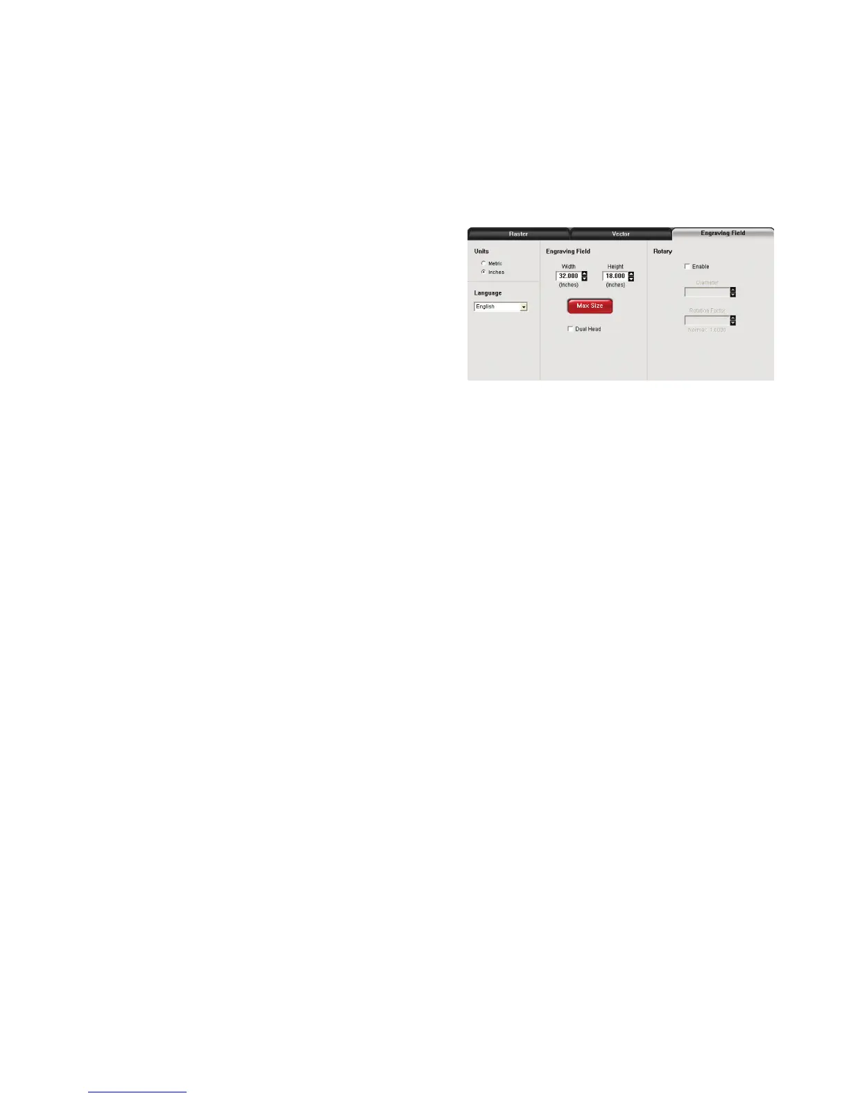 Universal Laser Systems VLS3.60 - Engraving Field Sub-Tab; Language; Rotary; Rotation Factor