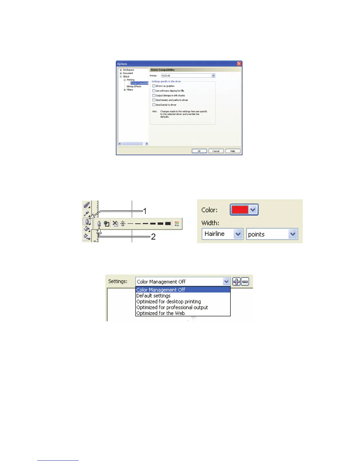 in the printer drop-down list. In the “Settings specic for this driver” dialog box, make sure that ALL the