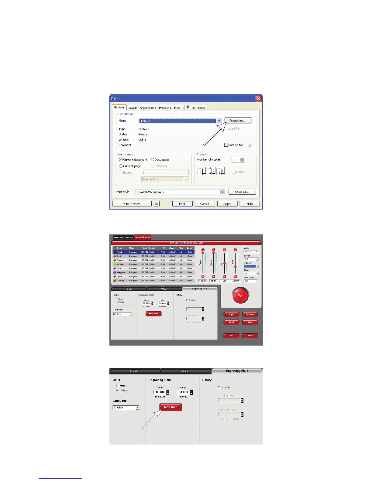 Note: If you are using the Material Database printer driver to engrave on an object, you do not need to