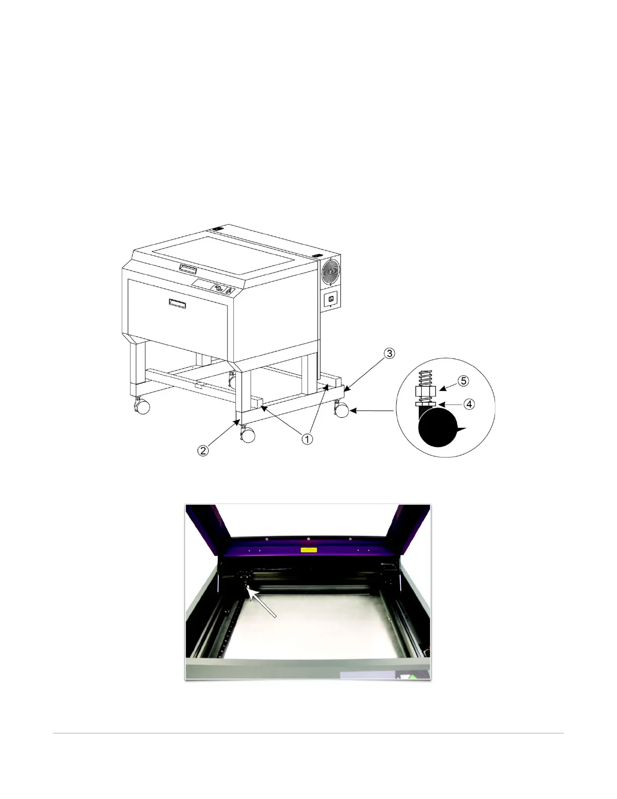 nuts provided on the laser system casters. This will ensure the laser system is not twisted due to unlevel