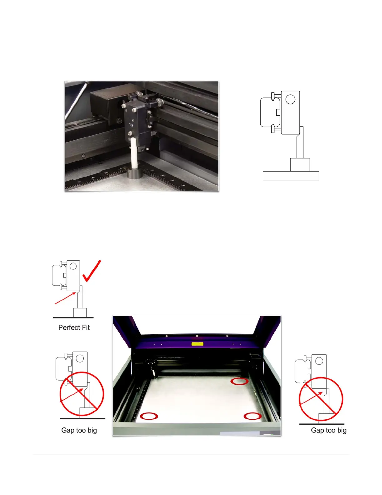 5. Using the upper left corner as a reference point, move the focus carriage by hand to each corner