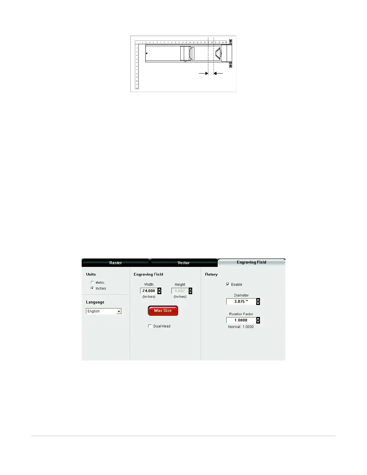 2. In the ULS printer driver properties dialog, press the Engraving Field sub-tab within the Manual